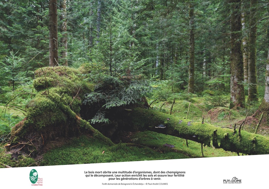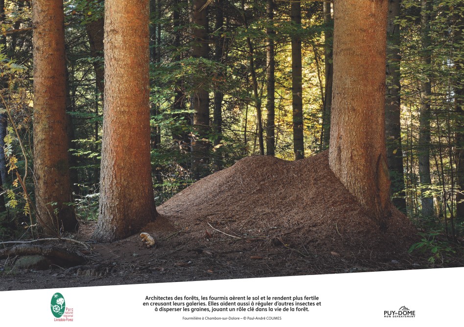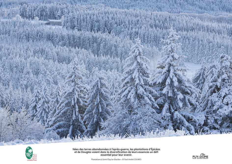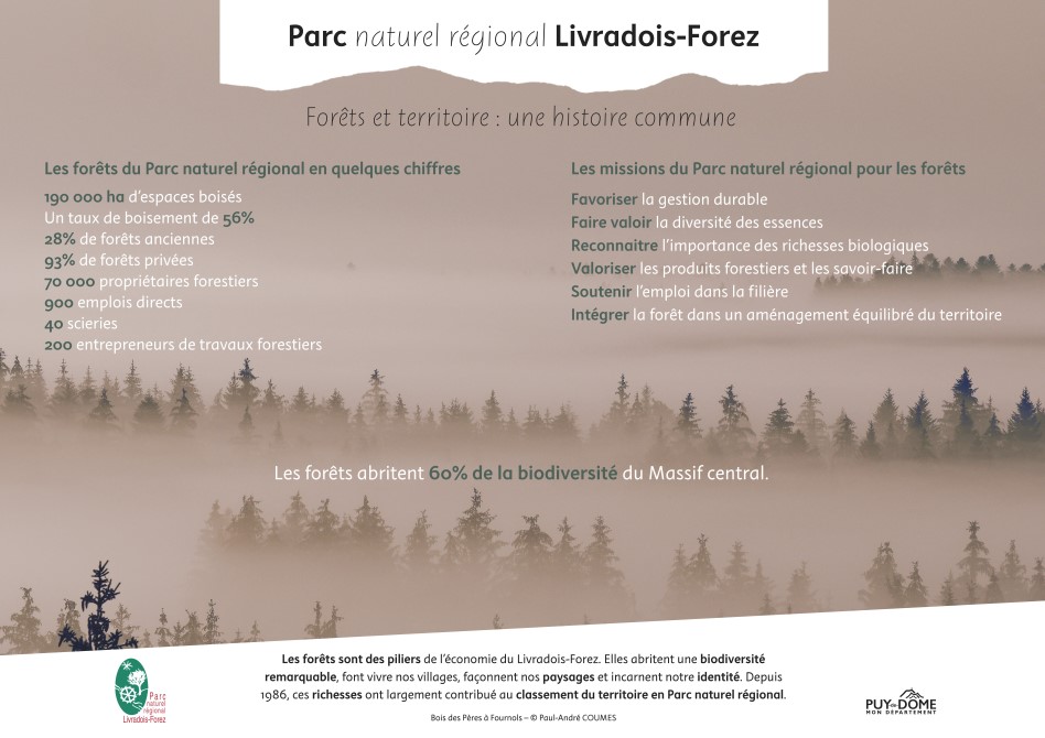 Cette exposition m’a été commandée par le Parc Naturel Régional Livradois-Forez afin de mettre en exergue auprès du public les forêts du territoire, la biodiversité ainsi que les métiers de la filière bois locale.